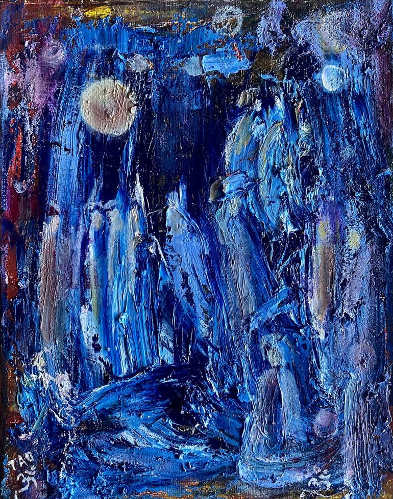 Planets in Universe Stir and rising Oil on canvas The war in Ukraine has taken a toll on me! I painted it and cried over the painting at the thought of the boys who died in the war about the children, old people, women... and about mothers who lose the most precious ones they have... their children...