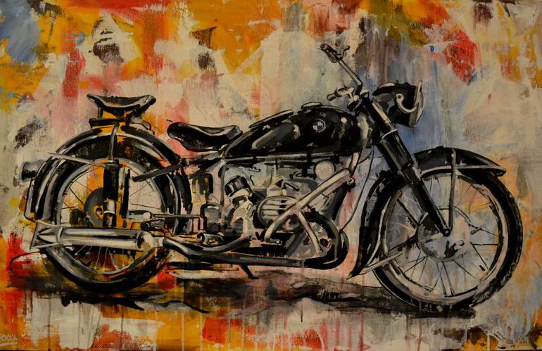 bmw R-35 biker acrylic/oil on canvas