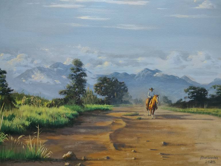Frequently visiting Manolo Fortich, Bukidnon, this view always greets me especially when I drive thru the vast pineapple fields during mid mornings when the skies are clear. So I thought I can make a painting that features this view of the Kitanglad mountain ranges, I then added a local cowboy as th...