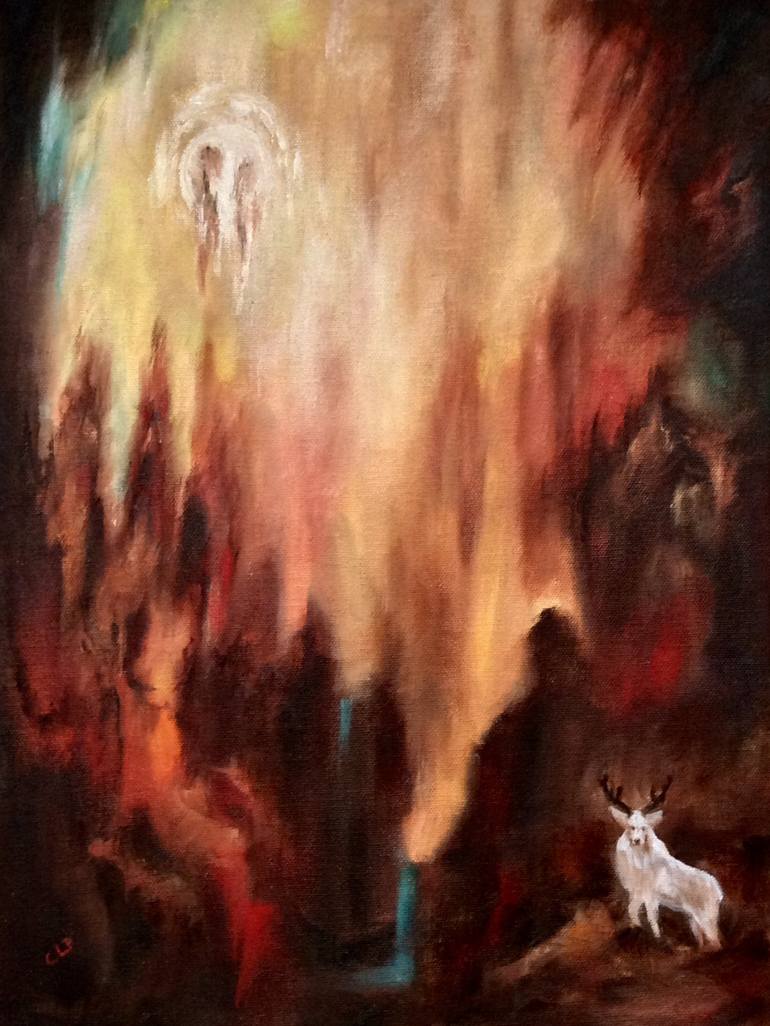 This is a painting I’m doing in a series of imaginative art. My paintings are like a cross between abstract and realism with a touch of fantasy thrown in. And the scene there’s a beautiful white reindeer, a legend of the mountains that it lives in. It is bold and strong and stands tall among the cli...