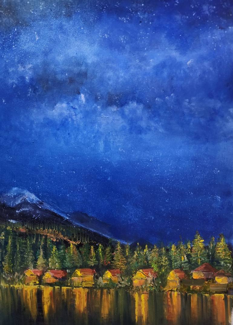 The work is inspired by the beauty of northern mountains in pakistan this hotel along the lakes in the middle of mountain looks a like diamond surronded by magnificent mountains The serene cool air in summer with the shimmering reflections of this motel The lights reflection is the main focus of my...