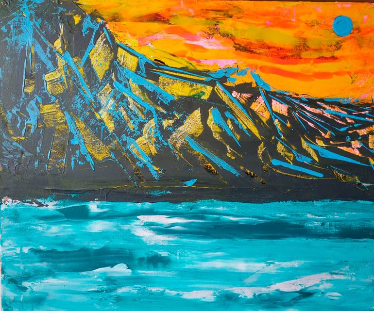 Acrylic Soft Idea Crimea Sea Mountins Sky Putty knife