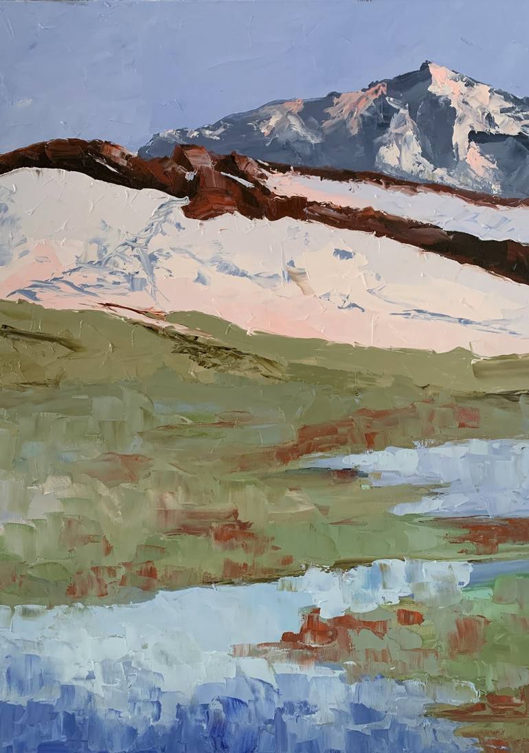 Mountains. Alps. Landscape. Landscape with the mountains, lake, green fields. This is one of a kind original oil painting. ►100% handmade oil painting on stretched canvas ►Dimensions: 50 x 70cm. (unframed) ►To see the details of the painting; please click "ZOOM" to enlarge the images. ►It is made ...