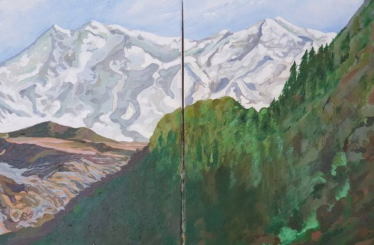 This work has 3 canvases 30x40 There I breathed air incompatible with anything else. Mountains are the power of stone and water - there is constant energy. The mountains became for me huge inspiration and a symbol of strength. It was they who led me to paint.