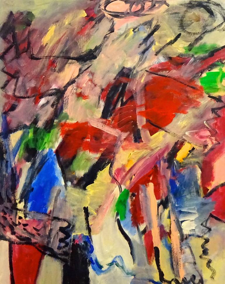 - Artist statement : 'In the labyrinth of my thoughts are many roads leading to the unknown' many roads are leading to the unknown - around every corner a surprise - fata morganas unprecedented views - paintings designed according to laws of their own. - She lives and works in Bilthoven, the Netherlands. In the 90's, she started painting by following various courses in this area in Amsterdam, also in etching, modeling and screen printing. In recent years she has focused on painting with acrylic paint. - My style of painting is inspired by the abstract-expressionism. I admire their sense of freedom of expression. I am also fascinated by the alchemy of colour. - Her art images are created in her head and in her mind. Her fascination with images that are not possible or not correct representations of reality, cuts across the idiom of the art of Surrealism. The style of her paintings can best be described as lyrical-abstract. Usually she works in several thin layers over each other. Each layer provides inspiration for the next, with new ideas. The different layers and colors gives the acrylic paint depth and character. My paintings find their shape during the making of them. Starting point is a certain image I have in mind, or a distinct form or colour. My way of working is spontaneous, a process of improvisation. The painting is a work of action, until a stage is reached wherein every form and colour is for me at the right place. In this way the paintings are the reproduction of internal images : 'landscapes of the mind'. My style is abstract-figurative, with often the human form as a subject. Favorite painters : Picasso, Kandinsky, de Chirico, Miro, Franz Marc. - As regards the meaning of a work: her paintings are like music, there are no words needed for its interpretation. Each painting tells its own story, and those who look at it may experience it in his own way, can give his own meaning to it. - underneath colour and shape there are laws a painting must fulfill an invisible framework proportions movement limitations one must be able to enter the painting and to leave it the arrangement of the forms is leading the phantasy via the unknown to the inner life colour and form forged together with the laws shaped by the artist