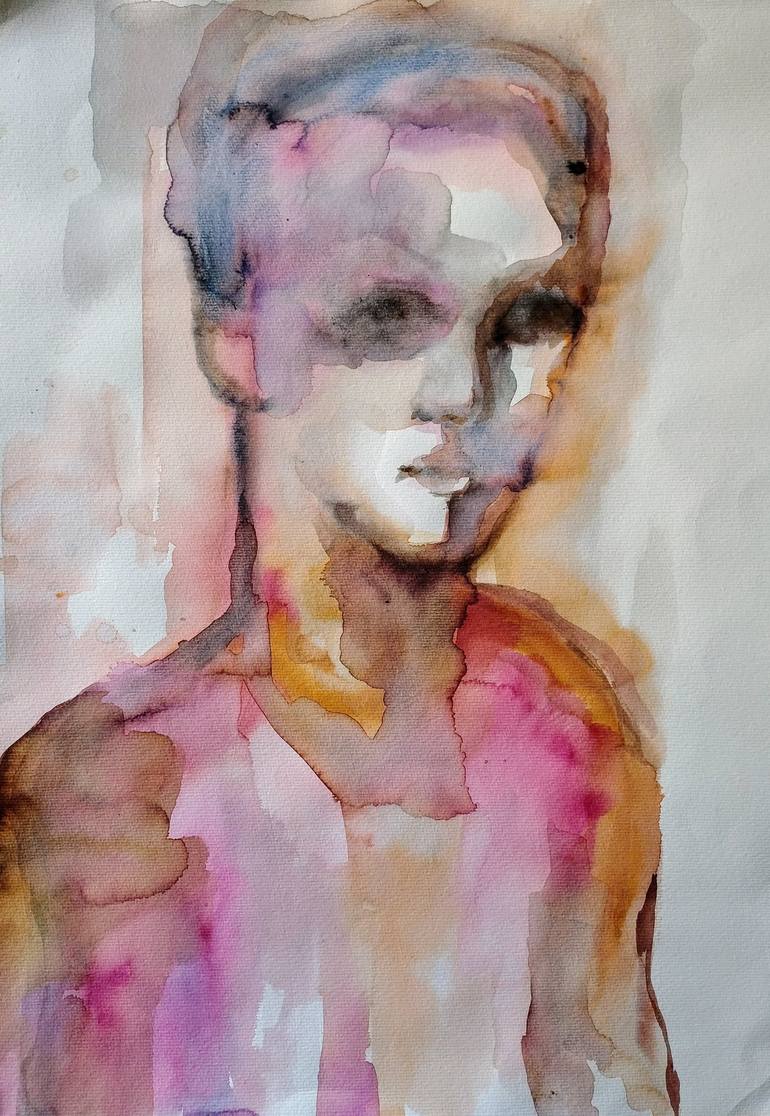 A friend of mine portrait. Expressionist inspiration. Watercolor and ink on paper. Figurative work.