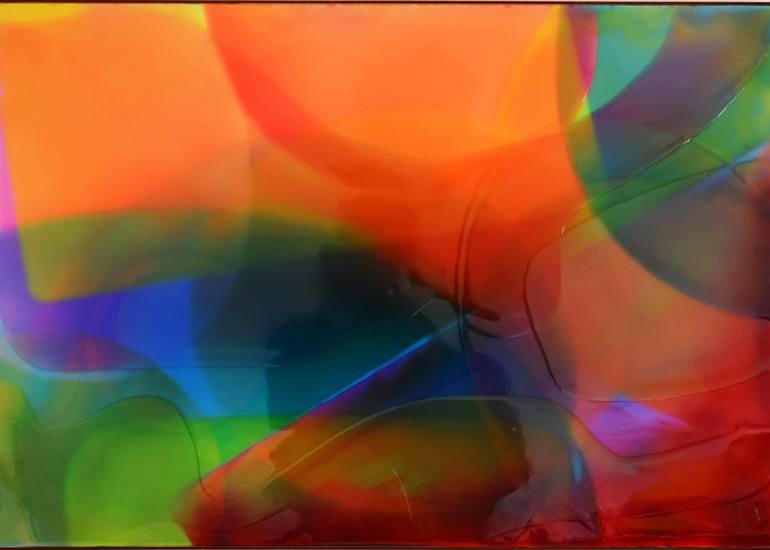 This painting is an abstract artwork made with resin on mdf. Rudy Tassos's instinct for modern innovative design forms the basis for his high gloss, archival resin film paintings. It offers a vibrancy and beauty that no other presentation can come close to matching. The highly polished surface illu...