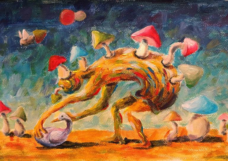 My photos of the paintings are taken under neon light and before drying, thus colors may be slightly different in other lights, or can be darker a bit!