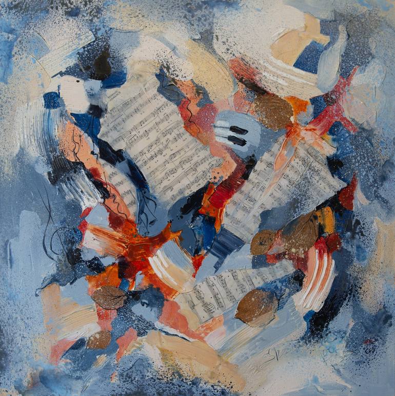 "Musical Fantasy" is a pictorial score in which color, texture, and fragments of musical notation are transformed into a single sound. The painting is constructed as an improvisation, where each brushstroke has its own rhythm, each splash of color its own timbre. This painting is a logical continuat...