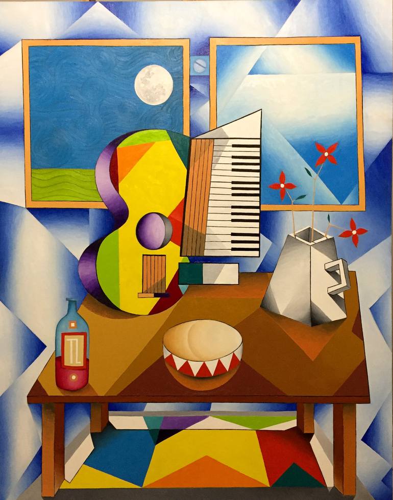 About twenty years ago I made my first painting on the subject, from what would become the Musician's Table Series. In addition to the formal beauty of the instruments, I am a lover of music and its various representations, fitting perfectly into my design and lifestyle.