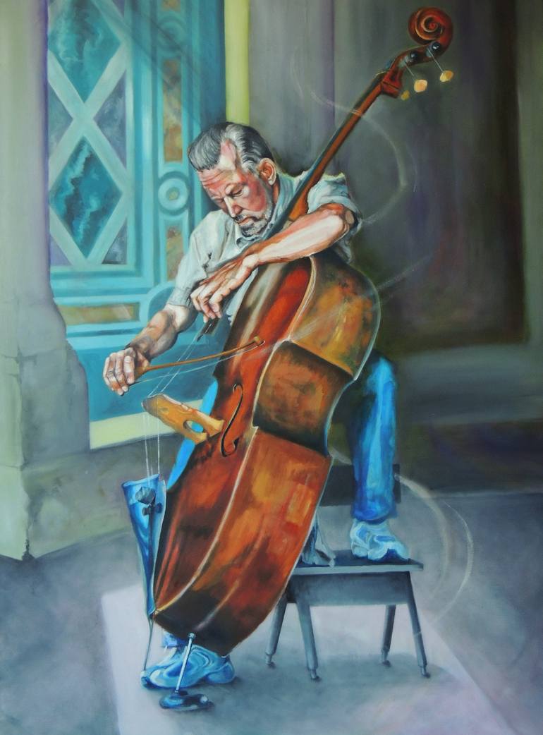 With this painting I wanted to capture the movement of the musician en the sense of music in the air.