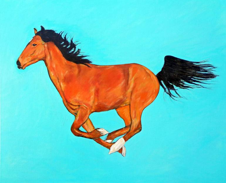 A wild stallion galloping free across the plains. A mustang leader of the herd.