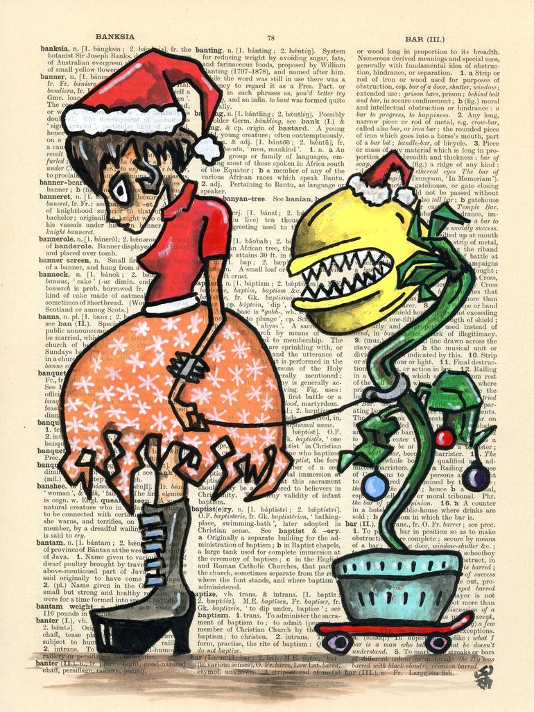 "My Best Xmas Friend" - where the whimsy meets the festive! 🎨🌼 This original acrylic painting collage art, lovingly created on a vintage page, now embraces the holiday spirit with a delightful twist. It's a true work of funny art. Within this playful piece, you'll discover a little girl adorned i...