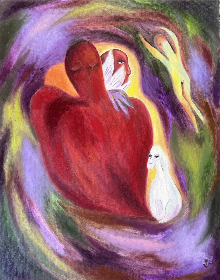 JJ Julia (Yuliya Pochynok) is an artist from Hungary. Born and studied in Ukraine, graduated from Lviv National Art Academy then moved to beautiful Budapest. JJ Julia had 2 personal and several group exhibitions. Her works are in private collections in many European countries, Canada, the United States and Asia (India). She explores woman's nature, femininity, emotions, forms and moods. Woman, a woman and nature and relationships between a woman and a man are her main interests. JJ Julia works mostly with oil paints on canvas, but experiments with acrylics and other materials. She tries not to repeat and copy herself, with every artwork JJ Julia invents some new approach, message, idea and style. JJ Julia bravely mixes abstract, expressionism, contemplation and humour, decorative elements and a combination of colours.