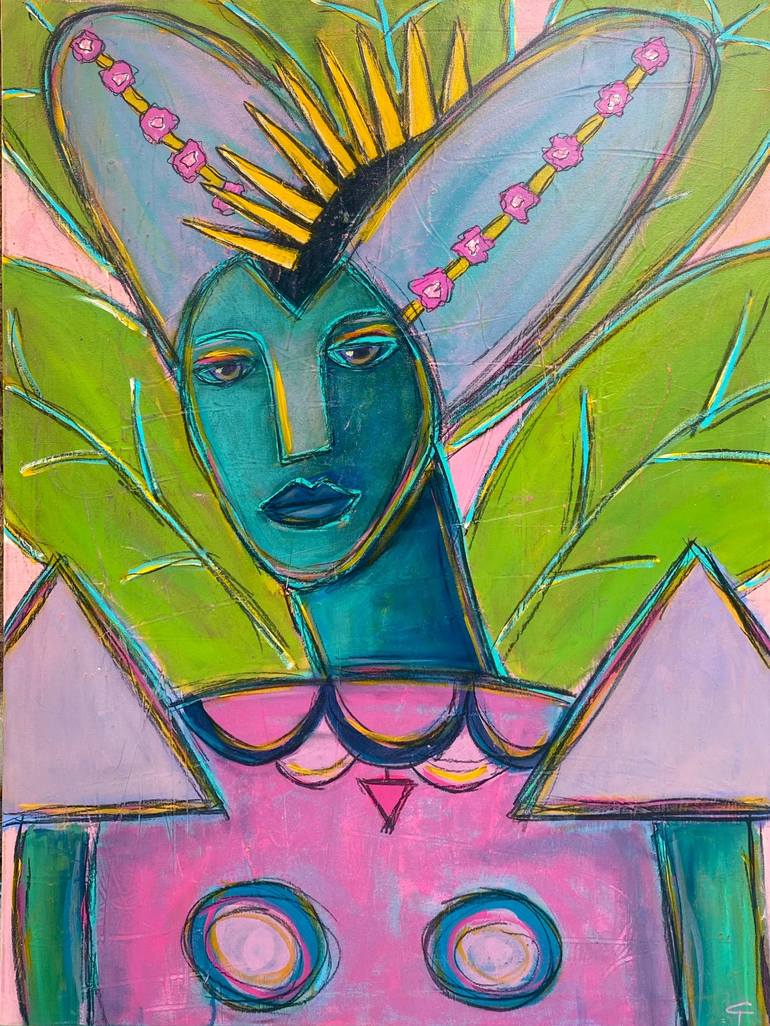 This piece is from my solo exhibition You Me Us Them We, an exploration of the commonality of the human experience in a world which seeks to divide. Drawing from fashion, mythology, nature , drag queens and pop culture, pop and street art, I wanted to represent the divine in all of us in this serie...