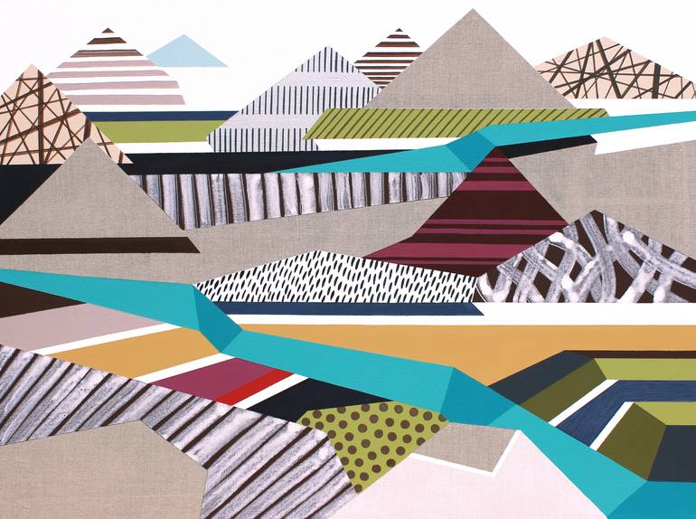 Original mountainscape painting - bold semi-abstract painting "My Personal Landscape 29" was created with bright colours on linen canvas. The size of this particular artwork: Height : 35,4 inches (90 cm) Width : 47,2 inches (120 cm) Depth : 0,8 inches (2 cm) Sides are always painted as part of th...