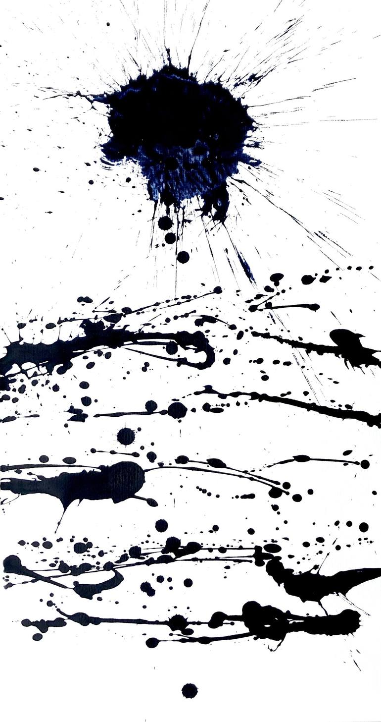 Dynamic painting with dark blue acrylic paint on natural paper in the style of abstract calligraphy. It is important not only what can be seen in the painting, but also the connections that take place above the surface of the paper and which follow each other. Master acrylic paints with high pigme...