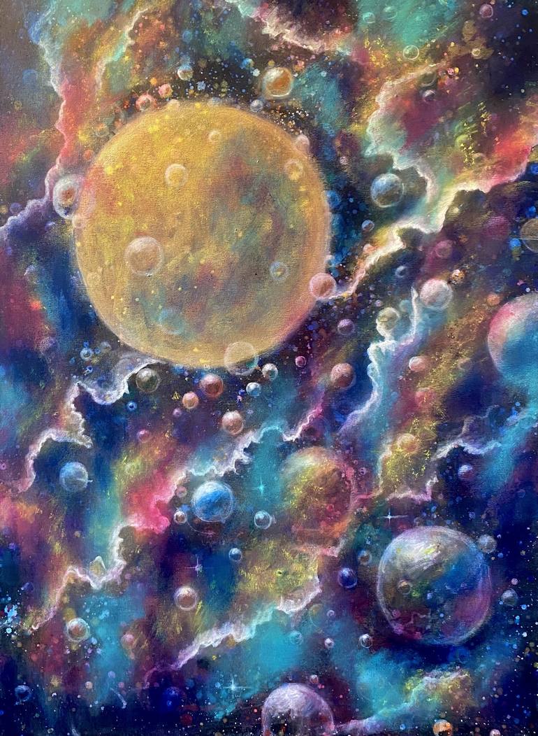My cosmos. Acrylic on canvas, (80x60x4.0) cm full moon meditation is always of interest to me. Wisdom and mystery, feminine power and energy. A lot of different symbolic in a painting. You may ordered different size och media. The work I create takes place before my eyes to see things. Just express ...