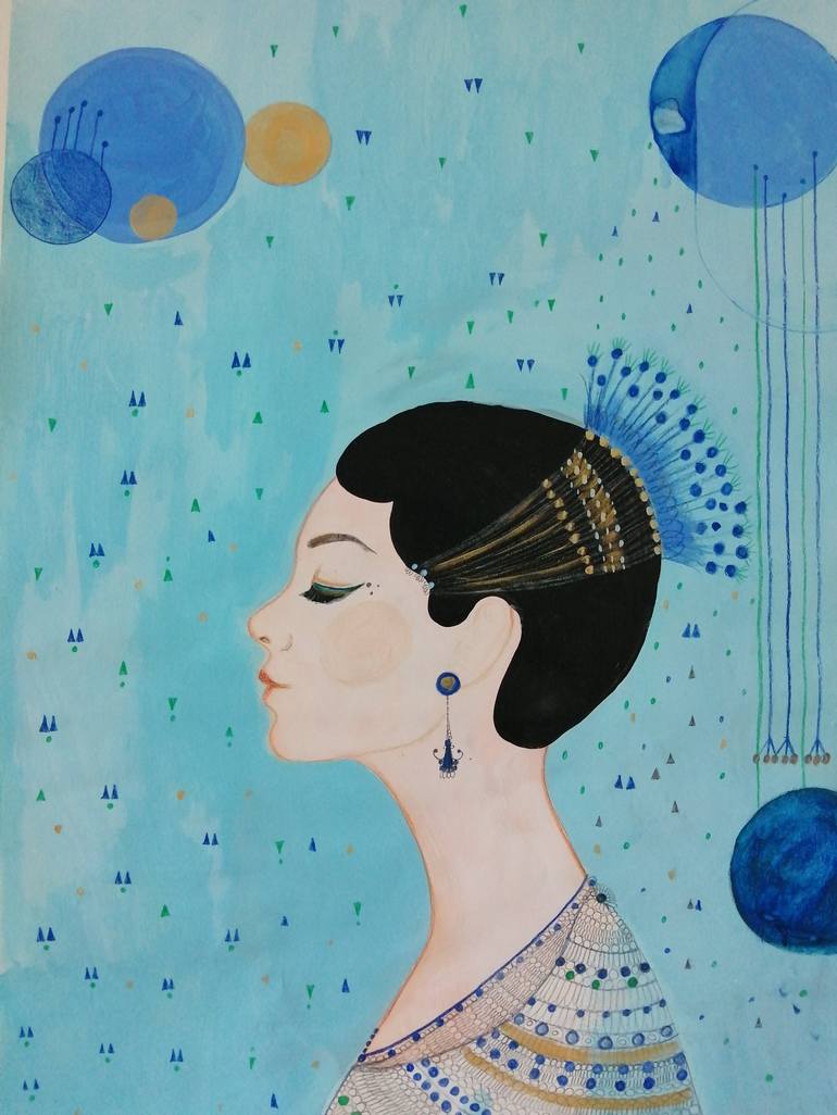 Acrylic, pencil and ink on acid free paper. This picture picture is a part of my art deco portrait series.