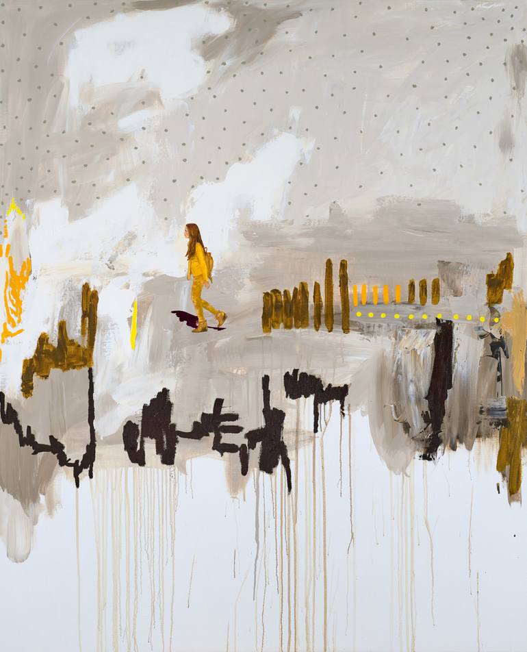 I love to place the human figure in vast, colourful semi-abstract landscapes. In some works her figures are depicted as an outline which has been filled in with various colours and shapes – as if the human form is a ‘container’ – of emotions, thoughts, memories. In other works, there is a more reali...