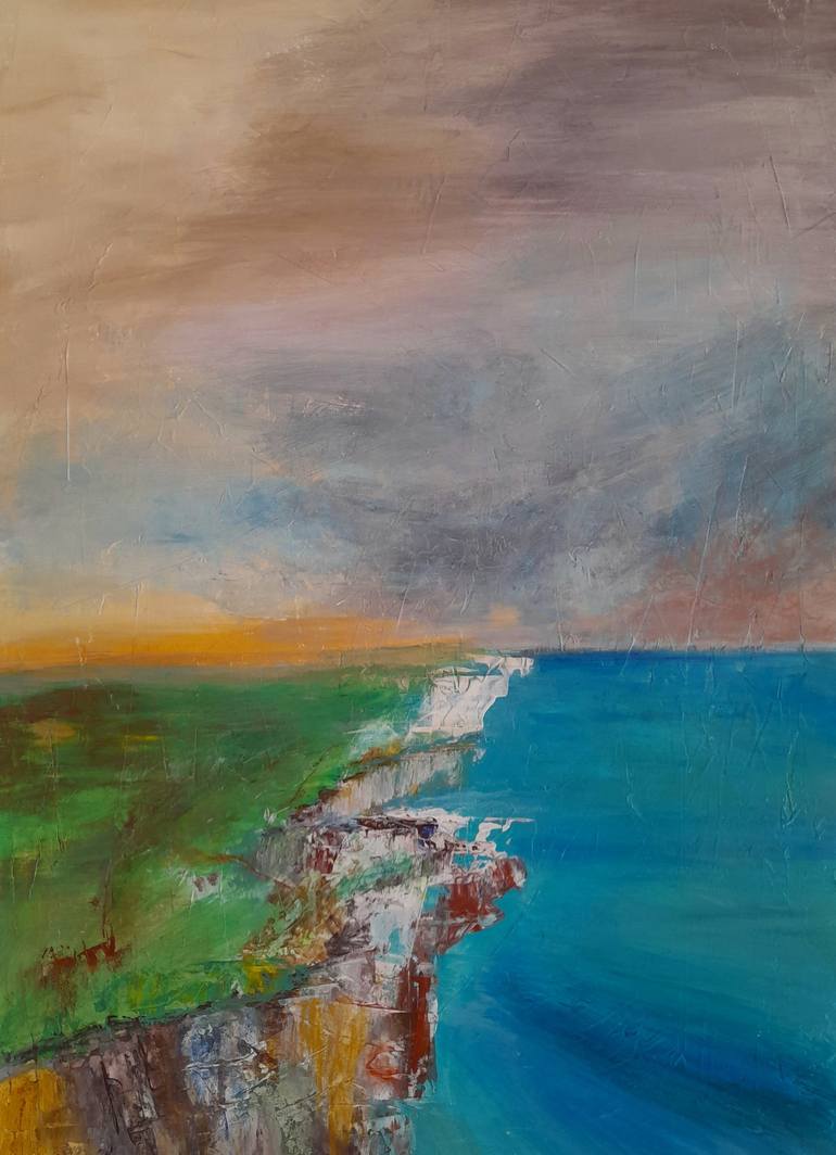 Inspired by the majesty of the cliffs of the Atlantic coasts, this painting invites the viewer on an emotional journey towards 'My Thinking Corner'. The work, rich in textures and pastel colors, evokes the immensity of the sea and sky, offering a space for contemplation and personal reflection. Thro...