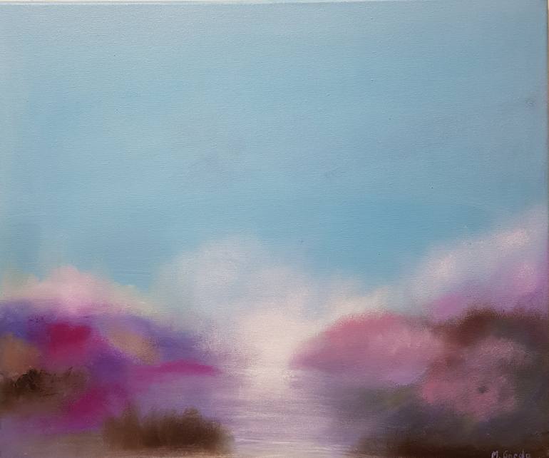 Oil on canvas This ethereal artwork by Mercedes Gordo immerses viewers in a dreamlike landscape of vibrant and soft hues. The serene composition features a gentle interplay of pastel blues, purples, and pinks, evoking a sense of calm and endless possibilities. The misty atmosphere blends seamlessly ...