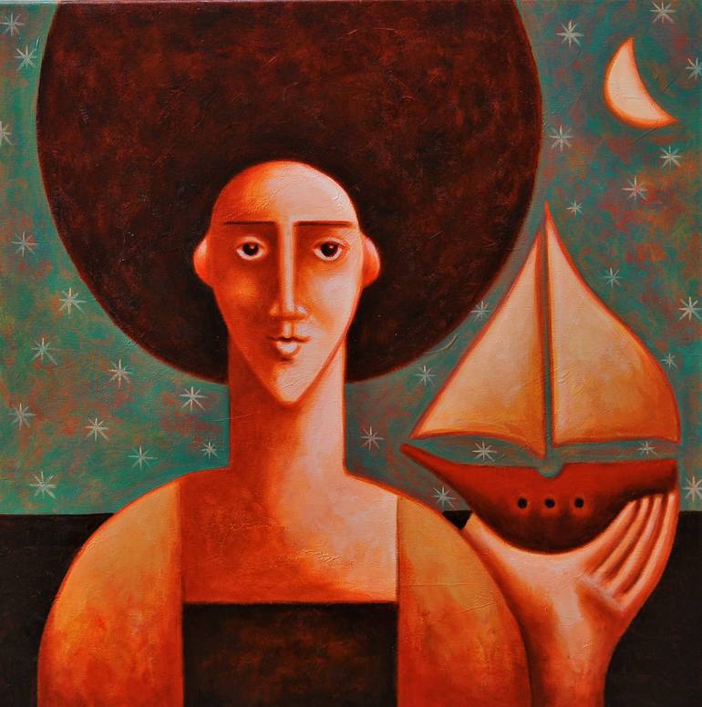 Story about the painting: "Human nature is endowed with curiosity, the desire to learn about things hitherto unknown, new places on the globe that we have not yet visited... Or just get behind the wheel, fly away or sail away on a yacht, escape from the daily routine and go to unknown destinations....