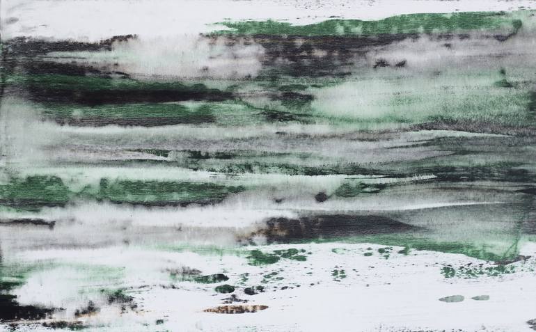 Original acrylic abstract artwork from the collection "Mystical nature". Grey and green abstract art painting on canvas. The artwork painted stretched canvas on a wooden frame and artwork is ready to hang. Framing is not required. A thin layer of varnish protects the artwork against UV light and du...
