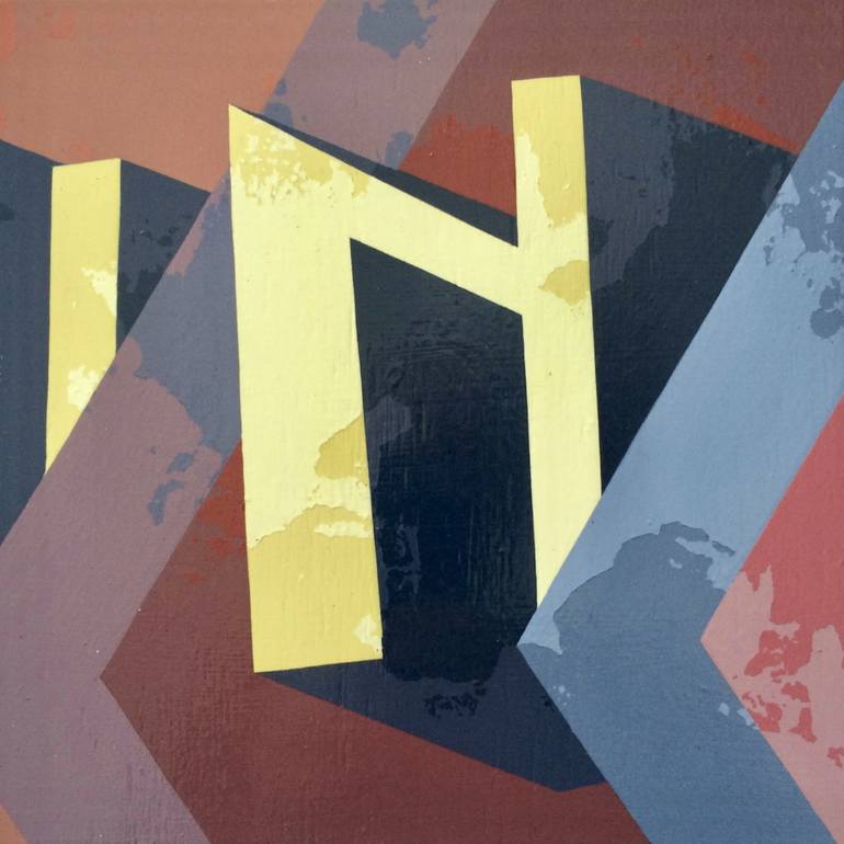 'N' Sign written on ply (including edges), finished in acrylic gloss clear - excursions into sign writing, letter forms and type, colour tones and decay. 20cm x 20cm x 0.6cm hardwood ply attached to 20cm x 20cm x 2cm cradled panel. The artist’s appreciation and love of graphic design and pack...