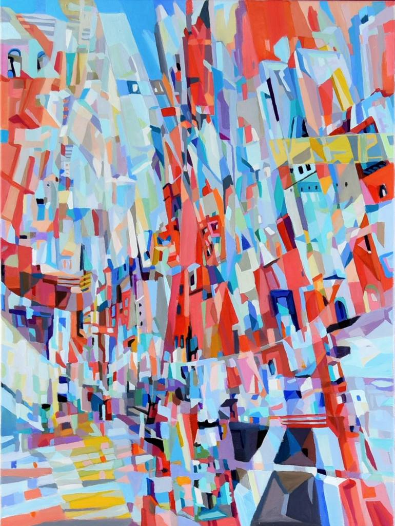 Bio: Born and raised in Brasov Roamania, Always a creative person, Nicoleta's life practicalities led her to a professional career as a bookshop manager. It was after she moved to Belgium in 2005 that her husband discovered her passion for art and he encouraged her to pursue her vision. At that moment she decided to undertake a profound change and pursue an artist career. In 2012 she received her Masters in Visual Art from Académie Royale des Beaux Arts, in Brussels. Nicoleta is now an emerging abstract realism artist, combine abstract and realist elements, working primarily in acrylic. She often employs a bold unconventional color palette, through which she explores themes evolving from nature and architecture: the interaction of the visible and the invisible, the physical world and the abstraction. She has exhibited in her home city, Manage, and in Charleroi and Brussels, Belgium. She serves as a volunteer art teacher for an adult program in La Louvière area Belgium Discover more at my website Née a Brasov(Transylvanie), toujours une personne creative ,Nicoleta par les aléas de la vie a effectuer un grand detour avant de se lancer dans une carrière d'artiste peintre a laquelle elle a pourtant aspiré depuis son tout jeune âge. Apres qu'elle a déménager en Belgique en 2005 son mari découvre sa passion pour art et il l'encourage de poursuivre sa vision .A ce moment elle decide un profond changement et de se lancer dans l'univers de la créativité.In 2012 elle a reçu son master en Art Visuelle et de l'Espace a l'Académie Royale des Beaux Arts a Bruxelles. Nicoleta ,maintenant c'est une artiste émergeant réalisme abstrait ,combinant l'abstraction avec des elements réel, et son travail et primordial en acrylique. Souvent elle emploie une palette des couleurs fortes et plein de fantaisie dans quel explore des themes qui va de la nature a l'architecture ; l'interaction du visible avec l'invisible, le monde physique et l'abstraction. Elle a exposé dans sa ville a Manage , et a La Louvière, Nivelles , Charleroi, Bruxelles Belgique. Elle travail comme professeur d'art dans un programme pour le adulte dans la refion de La Louvière Belgique . Artist statement My daydream is to create a magic world that generates joy and energy. Inspired by everyday moments, and nature and urban environments, I question the perception of reality by multiplication of senses, the ambiguity of vision of things.
