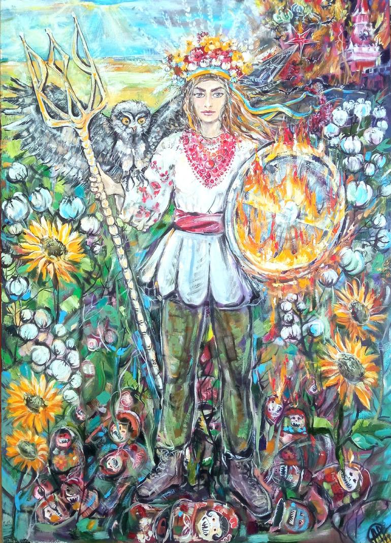 Original Oil Painting on stretched canvas Symbolism, Modern. Name - Nika Ukrainian (Goddess of Victory). In this pictorial work, I put my wishes and dreams, so that good finally, at this stage, won over the great and ugly evil, which came gradually and darkened the heads and thoughts of many. But pe...