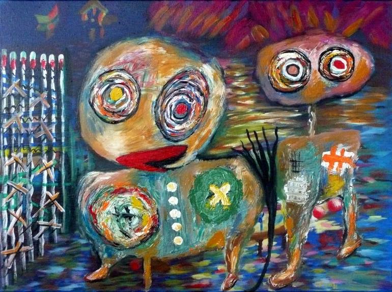 Art for me is a way to express myself, by giving me the liberty to make the invisible, visible, I know that sometimes a painting is difficult to interpret and understand and this process involves a fight, not with other people, but with oneself.. Now I live and work in Alicante´s Province on the Mediterranean coast where I have my studio. I´m mostly a self-taught artist and painting for me is a necessity, the best way to express myself creatively and explore fantasy. My art-style is naturally very childlike and does not follow any current trends. I love colour and its vibrant use to create something different. My work is spontaneous and with the tools of my art I like to recreate my peoples, my forests, my villages in my particular and unique style.