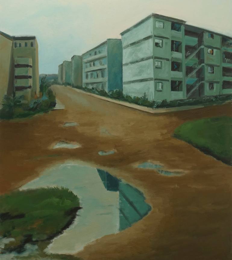 Nach dem Regen | 2022 | oil on canvas | 85 W x 95 H x 3,5 D cm The Canvas is stretched on a wooden frame and the edges are painted white so the art is ready to hang. The painting is signed and dated by the year and comes with a certificate of authenticity.