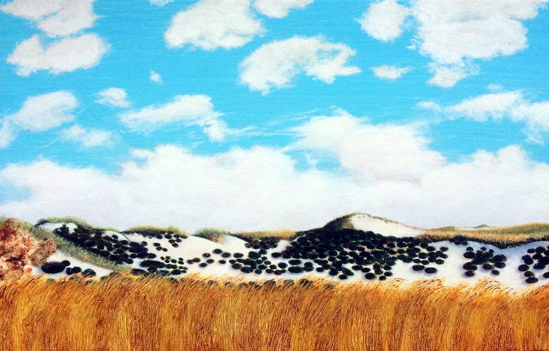 This is from a series of paintings on Masonite of places surrounding my home in East Hampton, New York. The dunes, which stretch from Gardiners Bay to the Atlantic Ocean, is a place where I spend my time hiking and painting. The Napeague stretch describes the land between Amagansett and Montauk. Th...