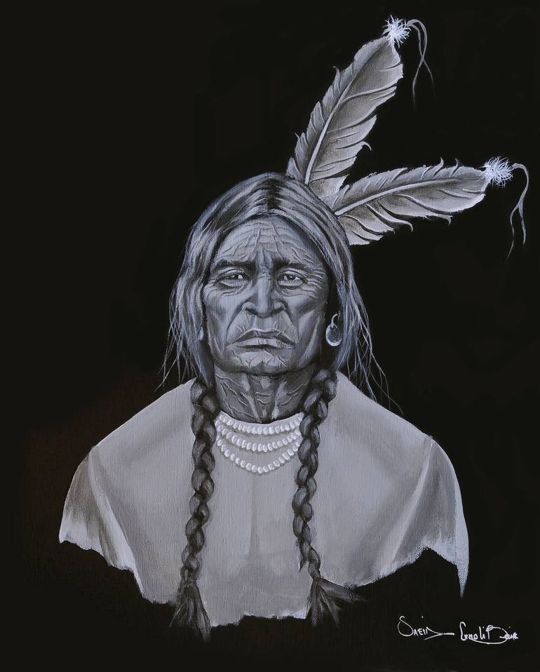 Native American in Acrylics Fascinated by Native American art and culture since my childhood. This painting portrays the pride and the pain endured by a Proud Native American man.