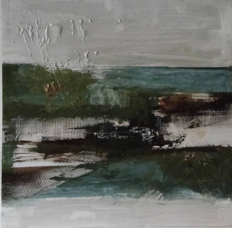 On cardboard, the artistic work is made with a material texture, acrylics and diluted oils to create glazes. The work is made in green color that expresses and transmits a relaxed and pleasant state of mind.