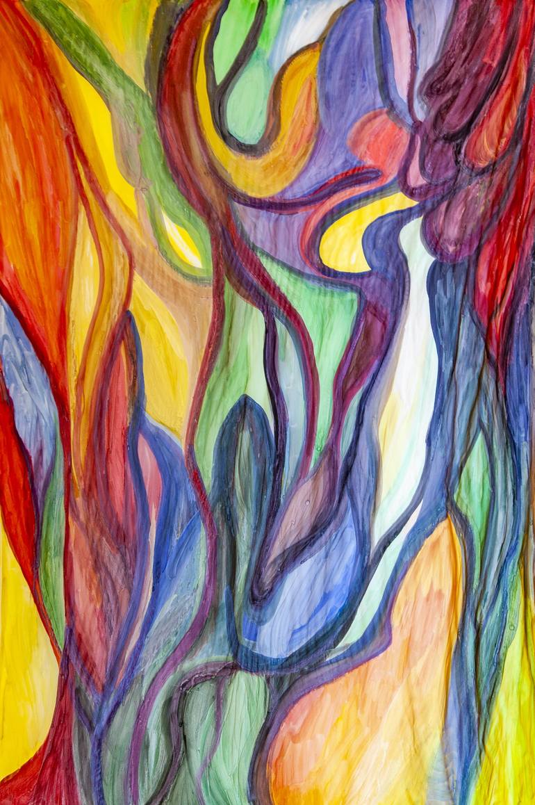 This painting was made after many long walks in the morning and night in Nordic nature. Noticing the way light filters through the forest and refracts from the colours, the stained glass windows of a church seemed to be rooted in the experience of light through nature itself. The original painting w...