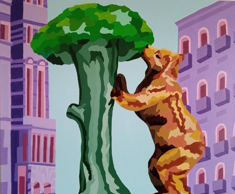 A captivating original piece of artwork giving an abstract feel to the painting. By using intense colours, I hope to have captured the essential elements of the picture. Within this piece I have created a picture of nature versus man made. We have the natural element of a bear with a tree and in th...