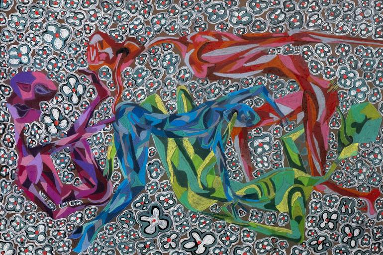 Quantum Entanglement of the Souls, is not just a painting; it’s a journey into the intersection of the cosmic and the human. This work emerged from an intuitive process where I allowed myself to become a conduit for universal energy. The result is a vibrant tapestry blending sensuality and science...
