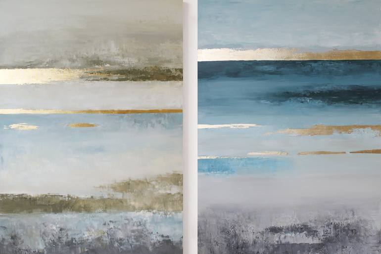 Discover the subtle side of abstract art with "Navy placidity," an original acrylic painting that blends blue, gray, and gold into a serene visual experience. The interplay of colors and textures invites you to explore its depths, offering a fresh perspective each time you view it. This captivating ...