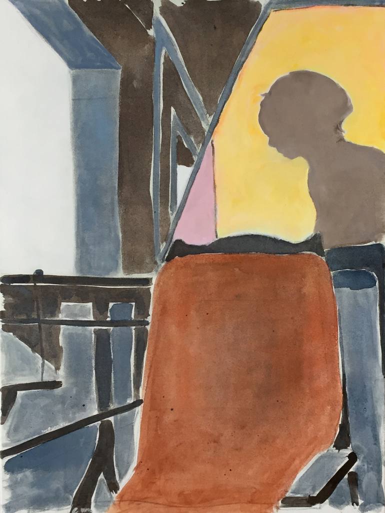 On the Greek island of Naxos in August 2012, on the nearby balcony, a brief appearance after a shower. Poetry emanating from the silhouette outlined by the setting sun, shot on the fly then painted according to the photo. Sur l'île grecque de Naxos en août 2012, sur le balcon voisin, apparition brè...