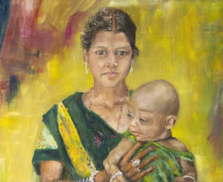 i met this girl with his son in India, Tamil Nadu, where i stayed as volunteer in the charity school of Pulluvapady. This is one of my first portraits i painted so it's particurarly meaningful to me.