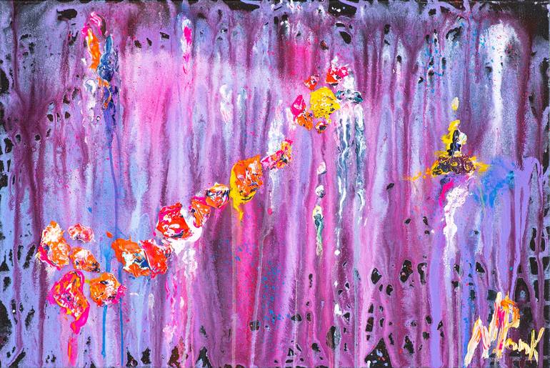 Elevate your space with this stunning Abstract Acrylic wall art. "Neon Flower" is a vibrant masterpiece featuring black, neon pink, light yellow, and purple hues that pop against the elegantly framed black frame background. This unique piece is crafted from upcycled paint pieces expertly formed into...