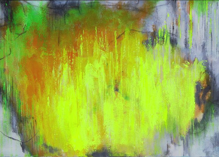 Painting: Acrylic, Pigments and structure paste on Canvas Artwork Title: Yellow Phenomenon, Grey Beige Abstract Painting, Neon Yellow Painting Size: 50 x 70 x 4 cm (19,7 x 27,5 x 1,6 inches) Painted by Neon Mary Year of creation: 2023 The picture has a certificate of authenticity The picture i...