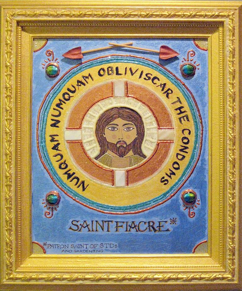 St Fiacre was a 7th century Irish saint who later built a monastery in France. He is the patron saint of STD sufferers, and gardening. He is typically depicted with a shovel as it pertains to his miracle, which was to turn over a prodigious amount of land after someone offered to give him as much la...