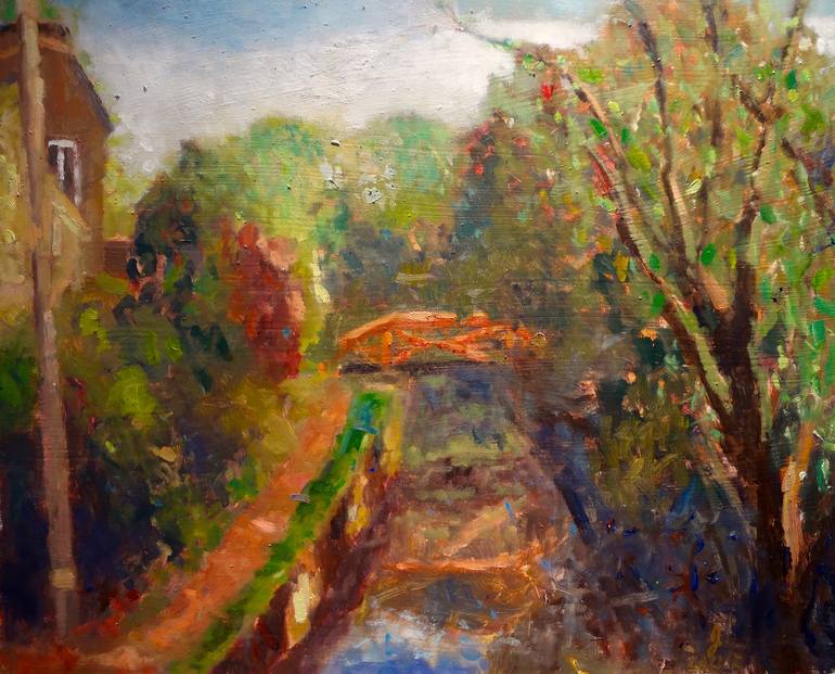 Painted during the Shad Festival in Lambertville, NJ. This scene is one of my favorites from New Hope, a small arts-loving town across the river where canals and red bridges are in full display for everyone to see. A true Bucks County Impressionism piece!