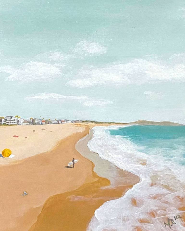 This piece reminded me so much of watching my Dad out surfing, when I was a kid. Oftentimes he would have us kids playing on the beach while he caught some waves. Sometimes he would out one of us on the top of the board and paddle out with us holding on for dear life. As you can see there is a surfe...