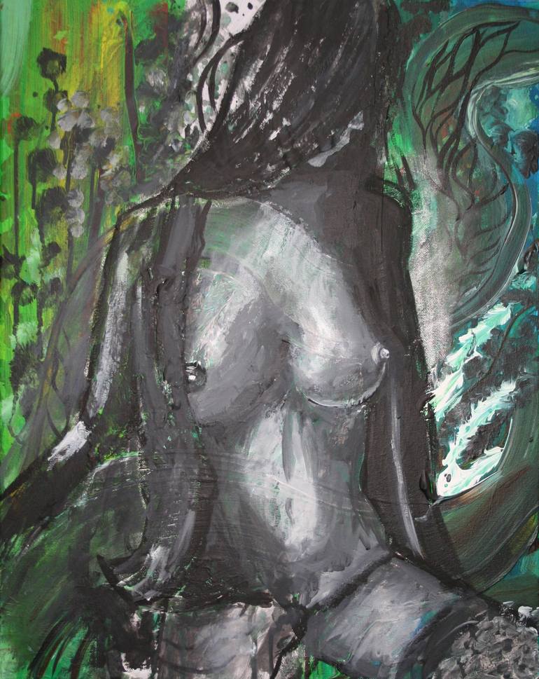 Next to me; acrylic, canvas, paper, pencil; 2022-2023; 20 x 16 inches; 51 x 41 centimeters Indulge your senses with this stunning nude acrylic painting, a true masterpiece of contemporary art. With its striking composition and harmonious colors, it is a feast for the eyes and the soul. The abstract...