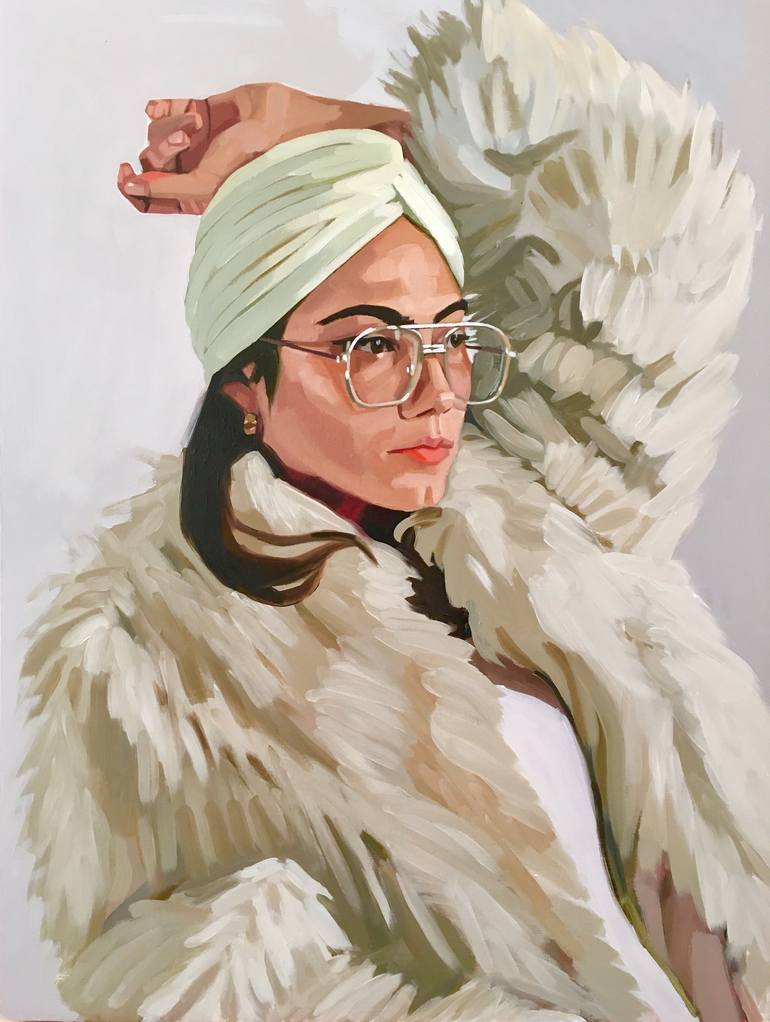 Hi! I'm Erin. I decided to get rid of the stuffy third person bio and just tell you a little about myself. I've been painting (mostly) portraits since 2008 and now have collectors around the world. I create artworks of my own design as well as custom paintings by commission. This is my full-time job and I am currently booked for over a year (my clients are awesome). I've painted a mural for Senator Kamala Harris and Martha Stewart owns one of my paintings! Oh yeah, so does Ringo Starr...like of The Beatles! How wild is that? I love textiles, plants, patterns and interior design, and these themes often make it into my oil paintings. For my personal work (what is available here), I actually build a set for the photo shoot to create a reference image, often handcrafting the items like rugs and wallpaper. Summertime and travel are my favorite things, so you'll catch me enjoying one of the two if I'm not painting my fingers off in my studio. The best place to check out my latest work is on my Instagram