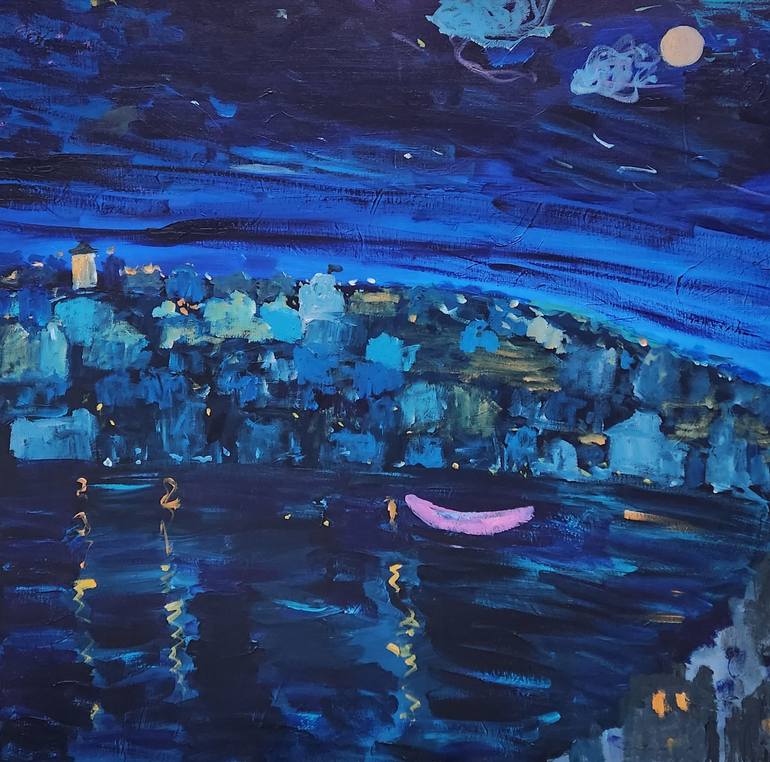 Do you have an admiration for night landscapes like me? These paintings by J.W. Morrice, Tom Thomson, John Grimshaw and Monet or Van Gogh have always been the ones that captivated me the most. Here is my version if the night landscape in all shades of blue.